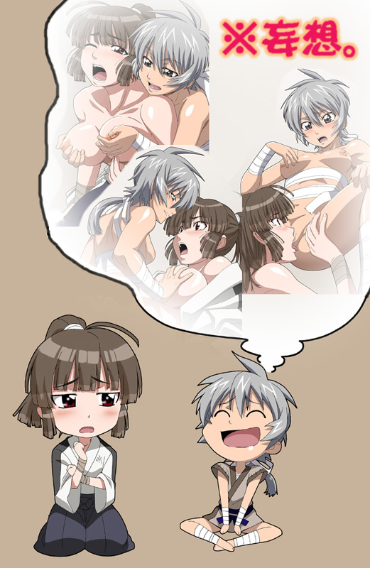 人妻さんの乳をもむ夜叉姫さんを描いてみたり・・・。微妙にコントラストを落としてあります。