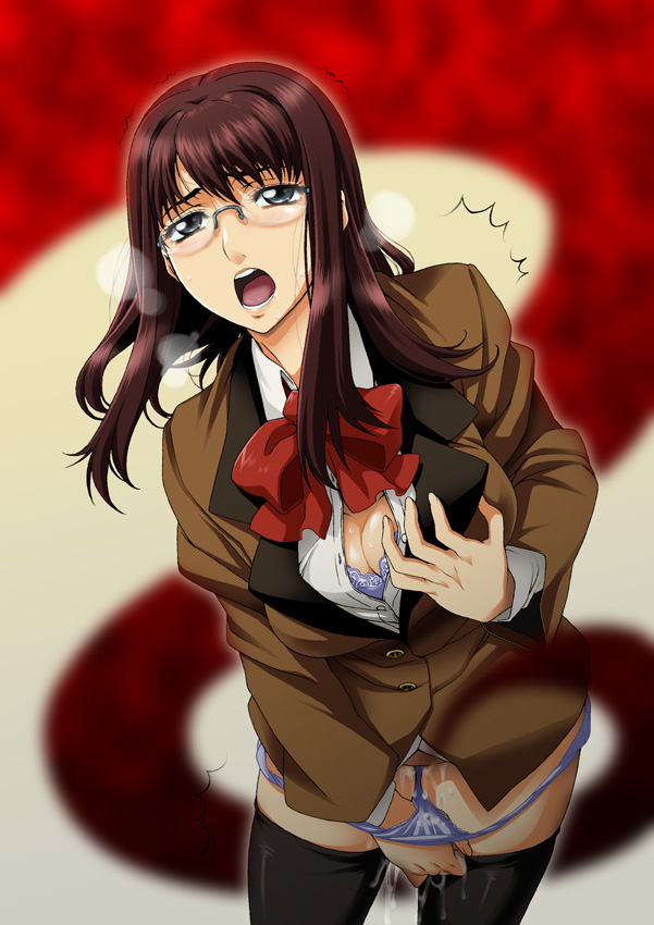 制服メガネ娘さんを描いてみました~。画面内にはいませんが夜叉姫さんに何かされてる感じで描いた画像です。